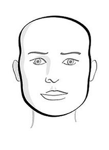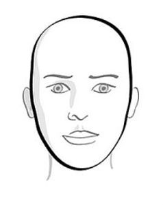 Se caracteriza por una frente angosta, pómulos anchos y un mentón angosto. En este caso un estilo complementario buscará reducir el ancho a la altura de los pómulos. Es necesario crear un estilo que se mantenga cerca de la cabeza, mientras que al mismo tiempo retiene ancho y cuerpo alrededor de la línea de la mandíbula y de la frente. Parecen no tener barbilla o se les ve muy retraída. Esta forma suele presentar una frente amplia y plana, y un mentón puntiagudo. Las orejas grandes o un cuello largo la resaltan aún más. Compensaremos con un estilo de forma inversa, con más peso y volumen alrededor del cuello y las orejas decreciendo hacia la parte superior de la cabeza y alrededor de la frente. Un cuello delgado y un mentón puntiagudo pueden compensarse con un cabello más largo en el área de la nuca. Utilizaremos las técnicas de forma para lograr cuerpo y volumen dónde sean necesarios. Al aplicar el maquillaje, se pondrá una tonalidad más oscura de base para el mentón y una más clara en las mejillas, los labios deben combinar con la tez; evitamos las tonalidades oscuras alrededor de los ojos. Mediante esta técnica la mirada se aleja del mentón y de la frente, creando la impresión de un rostro más simétrico este tipo de personas evitaremos los estilos altos y voluminosos, así como los cortes de cabello corto y puntiagudo, pues estos dan sensación de mayor amplitud de carrillos. En cambio, un peinado que se prolongue hasta media barbilla ganando volumen en su parte final o cortes desfilados a partir de ella ayudará a ampliarla.